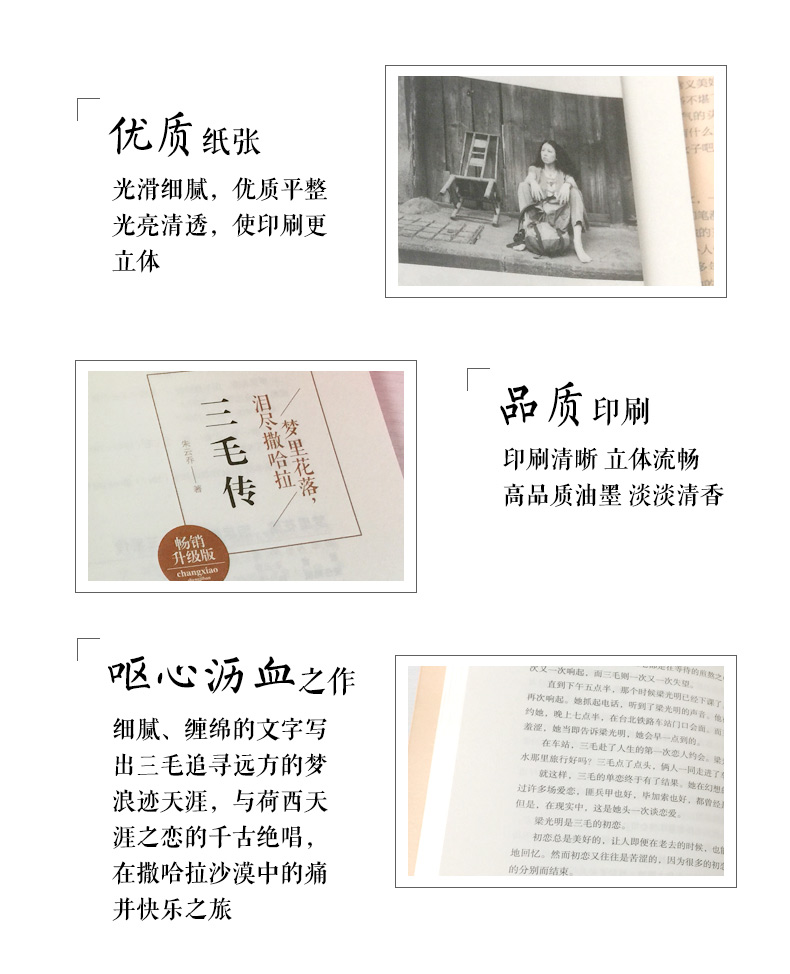 你若懂三毛,便知道什么是*真的爱情,什么是*深的梦想,什么是*美的流浪。《撒哈拉的眼泪:三毛传》是迄今为止*温柔的一部三毛传记。