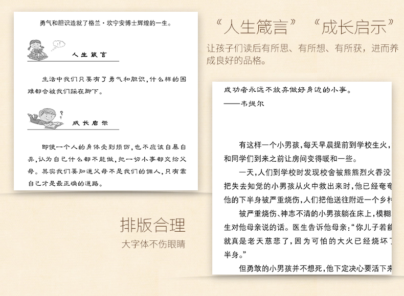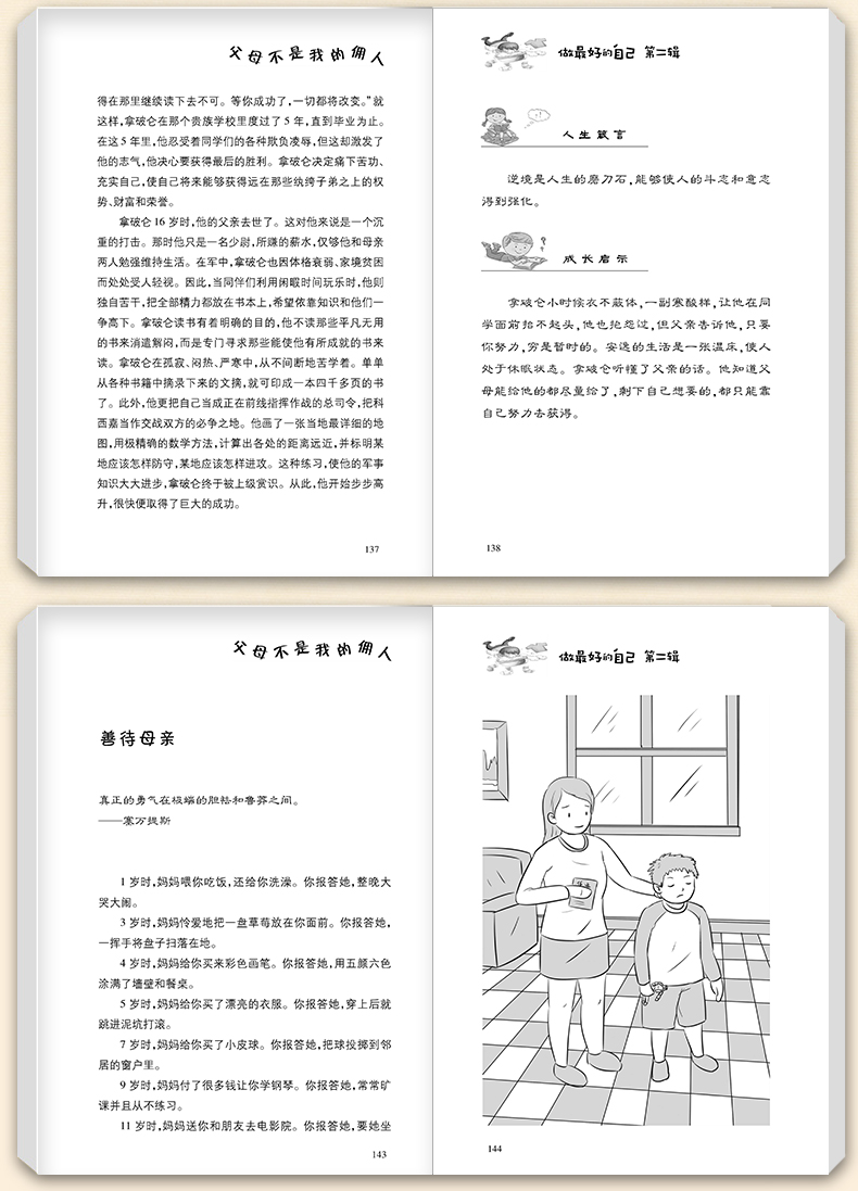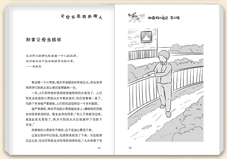 《做最好的自己》直击孩子成长最需要的元素,一本书培养一种优秀品格。本书文字优美、哲理深刻、情感细腻,涉及名人轶闻和贴近生活的小故事等,富有童趣,可读性强。每篇故事后均附有极具引导性的人生箴言和成长启示,通过“故事——引导——思考”的结构帮助孩子在阅读中领悟,在领悟中成长,自觉自发地去“做最好的自己”
